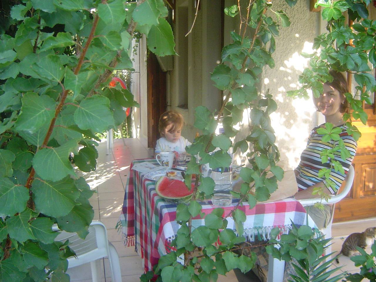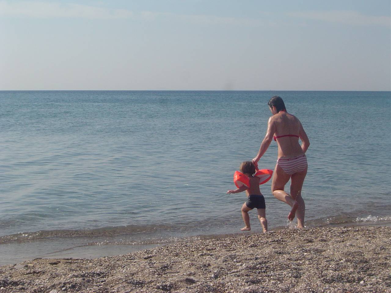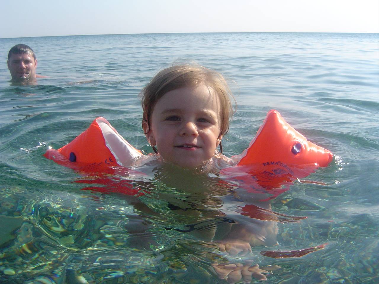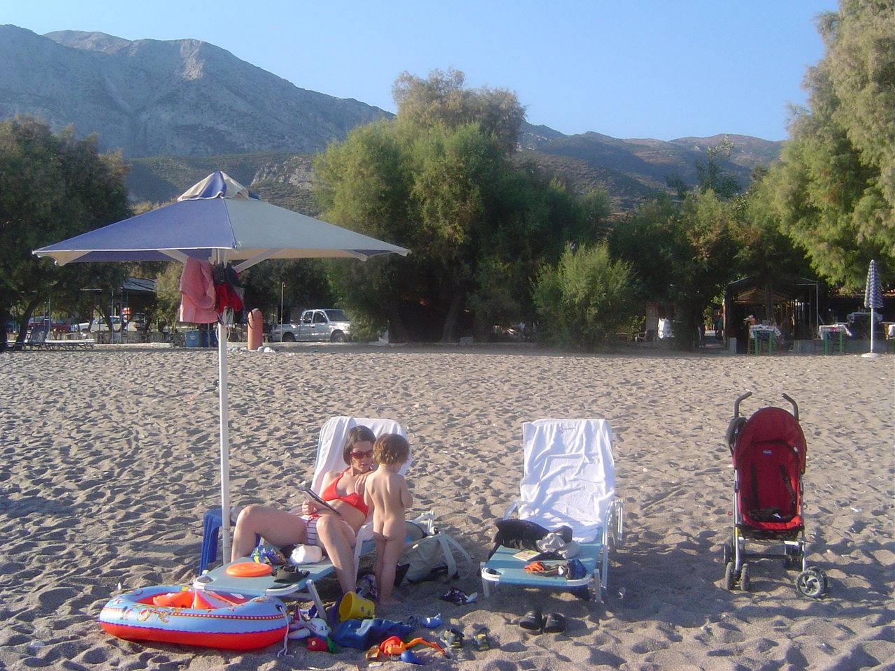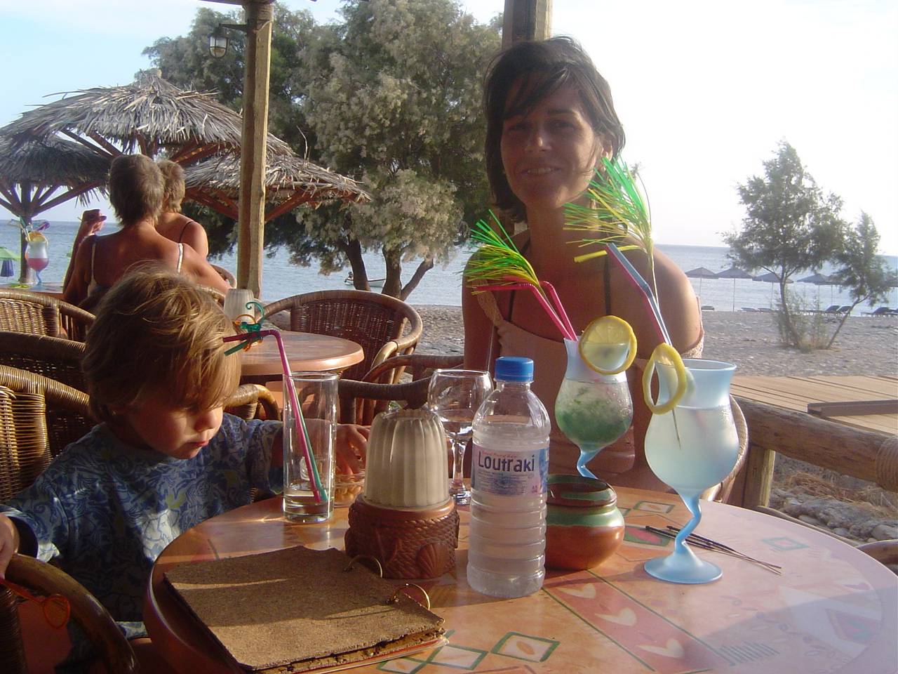 ab dem zweiten badetag war für oskar klar: ‚ich kann alleine schwimmen!' und so genoss er das gar nicht kühle nass nicht nur, wenn es spiegelglatt war. wir schafften sogar den einen oder andern after-sun-cocktail in der netten strandbar und verwöhnten unsere gaumen mit delikatem fisch und anderen köstlichkeiten in den tavernen in unserer nähe. im netten, familiären appartement mit der pflanzenüberwucherten veranda hätten wir's noch länger ausgehalten aber leider verging die woche viel zu schnell.